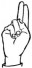 На ћирилици написано ЉУБИЦА КЛИНЦОВ састоји се из 13 слова [?]. Исписано ћириличном једноручном азбуком за глувонеме: